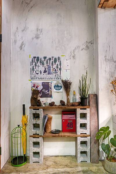 一進門的左手邊有傘桶 郵筒 跟一些裝飾品