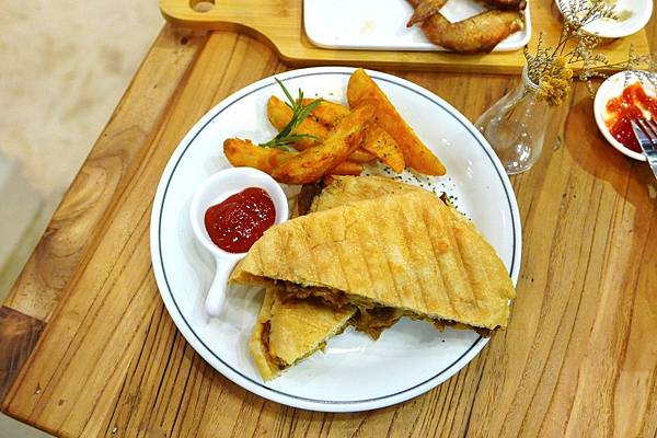 我們點了BBQ牛肉帕尼尼/麥先生的炸雞翅(檸檬椒鹽)/炸薯條/提拉米蘇/覆盆子還是莓果奶酪忘記了/草帽小子/輕輕親親