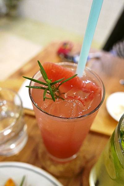 基底是新鮮的葡萄柚汁 但有微微的蔓越莓跟蘋果的味道 還有雪碧