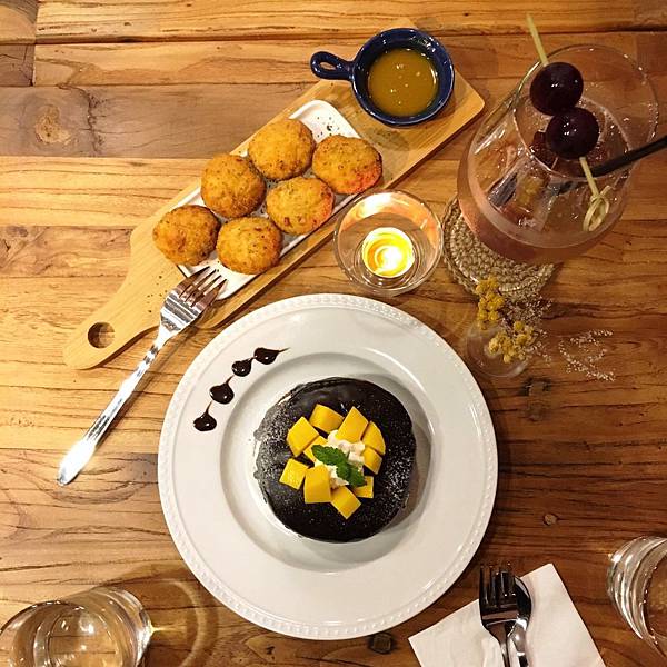 上面是調酒下面是食物
